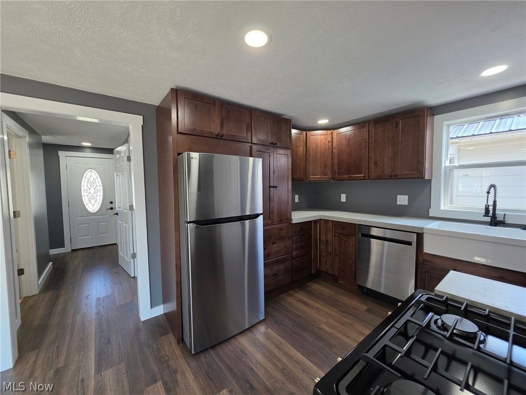 Enjoy a calm and peaceful setting at this beautifully remodeled home, thoughtfully updated inside and out. The spacious backyard is designed for relaxation and entertainment, featuring a large stone patio with fire pit, newly built deck with sliding glass access from the home, and a stunning pergola-covered gathering area. A winding path leads to a private fire pit area surrounded by mature trees, while the wooded rear portion of the property offers added privacy and a natural retreat with a walking path. Inside, the open-concept layout showcases a bright and inviting great room with abundant natural light and seamless flow to the outdoor living space. The kitchen is beautifully finished with engineered concrete counters, farmhouse-style sink, custom soft-close cabinetry, and all new stainless appliances. The home is equipped with efficient mini-split heating and cooling units for year-round comfort. Additional upgrades include vinyl E-glass windows, updated lighting, and modern finishes. The full basement offers freshly painted walls and floors, and excellent storage or future finishing potential. Laundry hookups for both gas and electric. The bathroom features a modern vanity with a lighted, press-to-adjust mirror, stylish fixtures, and clean, contemporary design. The finished loft area provides additional flexible living space?perfect for a bedroom, office, or bonus room. Exterior improvements include durable steel siding with vinyl accents, a detached 2-car garage with automatic openers and ample space for a workshop or hobby area. Located in a quaint and friendly town offering a park, scenic waterfalls, and a variety of local restaurants, this move-in ready home combines comfort, style, and a peaceful setting. Schedule your showing today?this one is sure to impress.